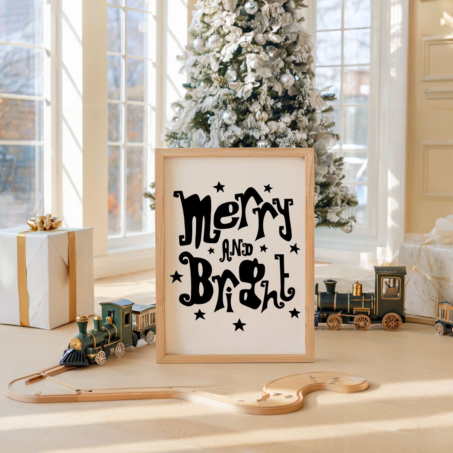 Bring festive cheer to your holiday decor with this charming "Merry and Bright" hand-lettered art print! Showcasing a playful, quirky black font, this minimalist design effortlessly complements any style, from modern to traditional. Ideal for both kids and adults, it’s a delightful way to add holiday spirit to any space, be it your living room, kitchen, or a child’s bedroom. Instantly downloadable, this print is a perfect addition to your seasonal decorations or a heartfelt holiday gift for someone special.