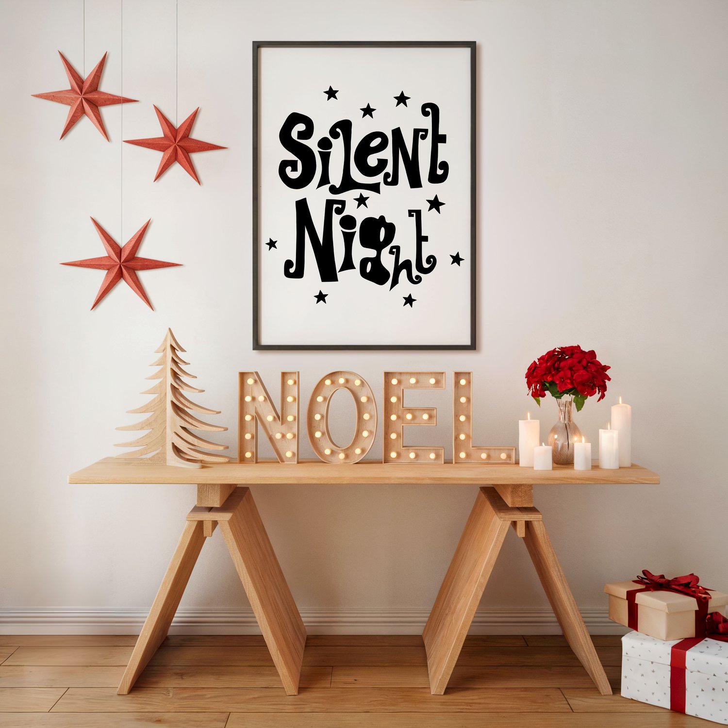 Embrace the tranquility and charm of the season with this "Silent Night" hand-lettered art print! Featuring a whimsical, hand-drawn black font, this minimalist design complements any decor style, from modern to rustic to traditional. Ideal for children’s bedrooms, family living spaces, or as part of a holiday gallery wall, this versatile print adds a festive touch to any setting. Instantly downloadable, it’s a heartfelt and easy way to bring holiday warmth to your home or surprise someone with a thoughtful seasonal gift.